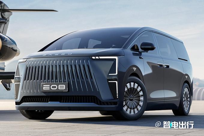 E08采用梯形直瀑格栅、前后分体式L型灯组设计;车内采用7座布局,配备悬浮式中控屏、2排独立航空座椅、全景天幕等,还有望配备空气悬架、后轴转向、抬头显示、激光雷达、高阶自动驾驶系统。